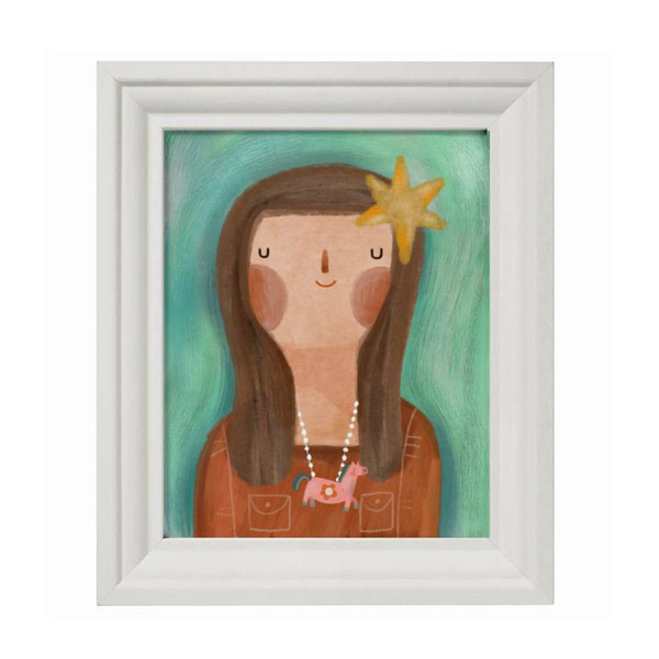 Brighten up your child’s space with this charming illustration of a girl wearing a big star-shaped hair clip and a magical unicorn necklace. The whimsical details and soft colors make this wall art a perfect choice for sparking imagination and adding a touch of enchantment to any room.