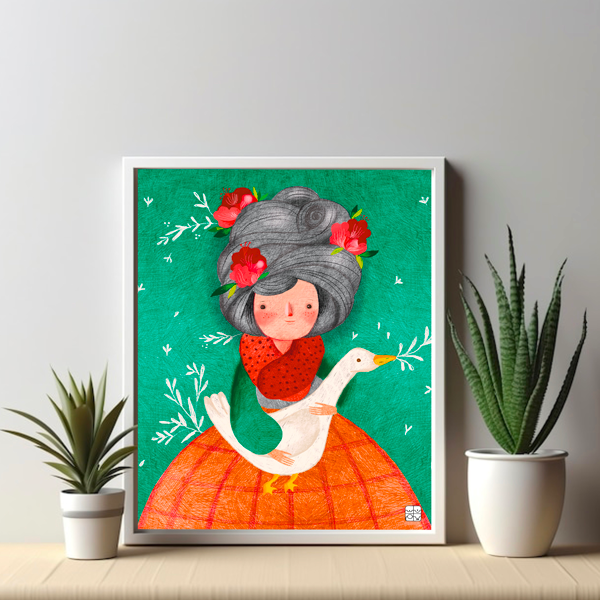 Dive into a realm of abstract enchantment with our captivating illustration, where a girl’s embrace of a duck takes on a surreal and whimsical quality. Vibrant colors swirl and dance, blurring the lines between reality and imagination. This artwork evokes a sense of playful wonder and invites viewers to embark on a journey of discovery. Add a touch of whimsy to your space with this mesmerizing print, and let its charm captivate your imagination. Order now to bring a splash of color and creativity into your home